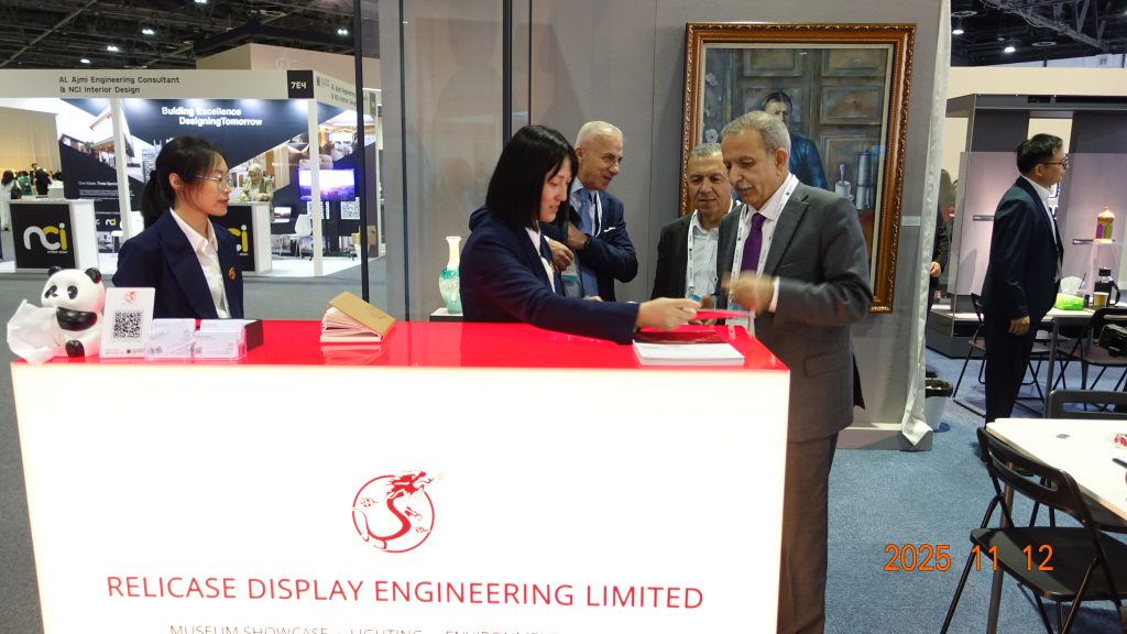 “We are Relicase, from China, a professional manufacturer of museum display cases. We are very happy to come to Dubai to participate in the exhibition.” Xu Xiaowei, the vice general manager of Relicase, greets all guests from all directions with a smile.