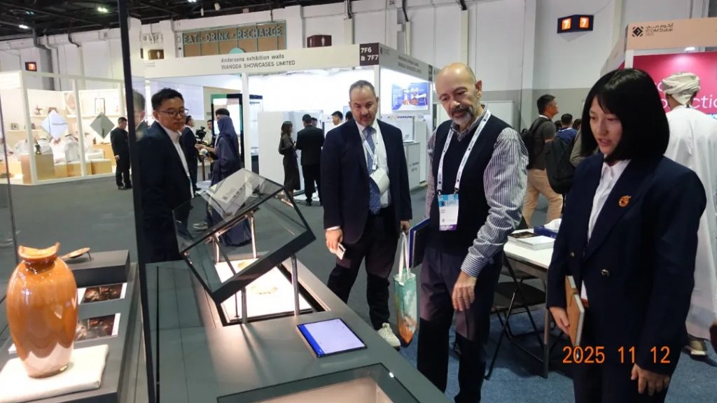 The three innovative core technologies of the display cases integrate aesthetics, function and practice, echo the theme of the conference with a vivid “sense of the future”, and open the new world of cultural and museum exhibitions, attracting world merchants and experts from all over the world. Ms. Ou Boqian, Consul General of the People’s Republic of China in Dubai, also came to the Relicase’s booth and had a warm conversation with Relicase team.